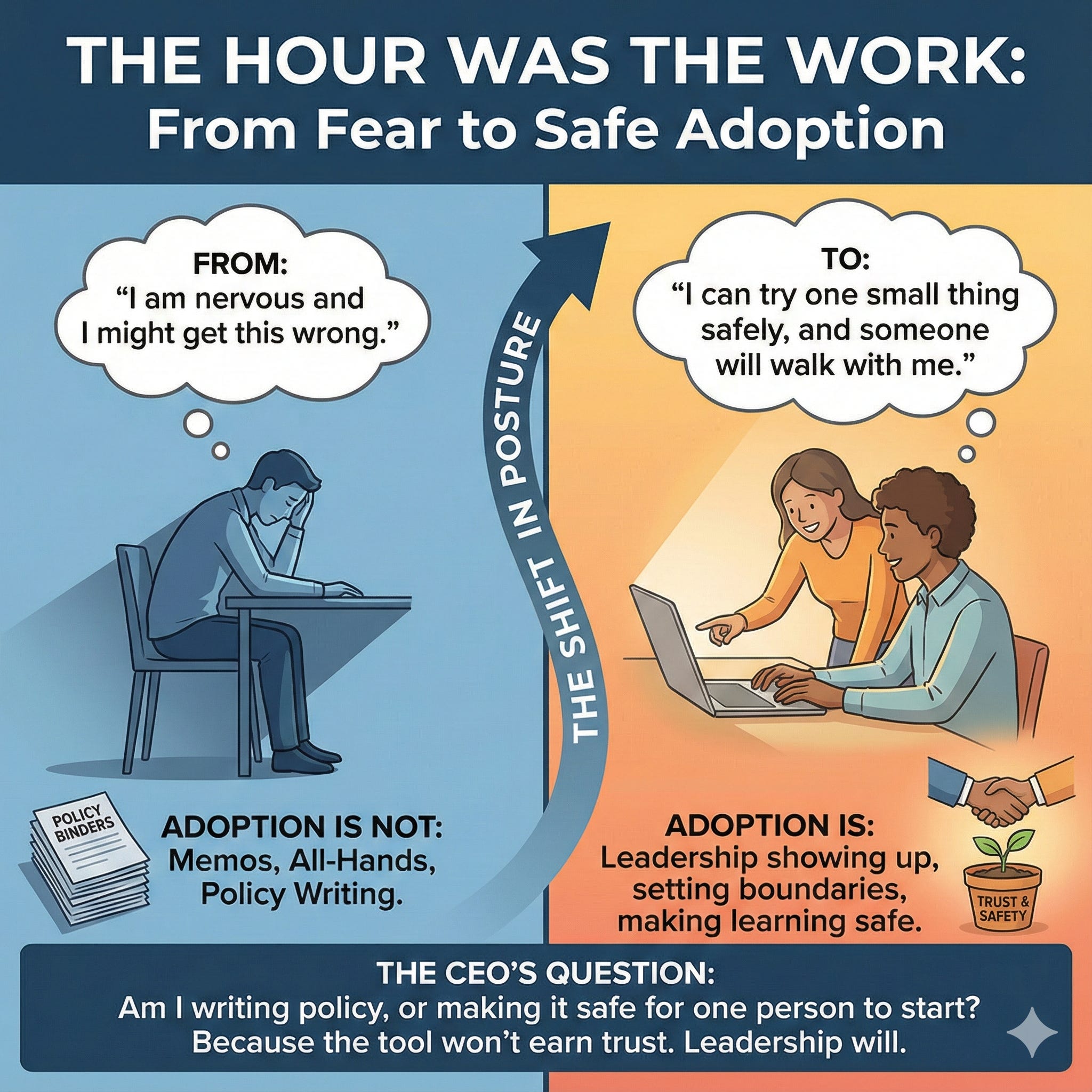 Before we talked tools, I asked one question that I think every CEO should learn to ask: “What are you most worried AI will do to you?”