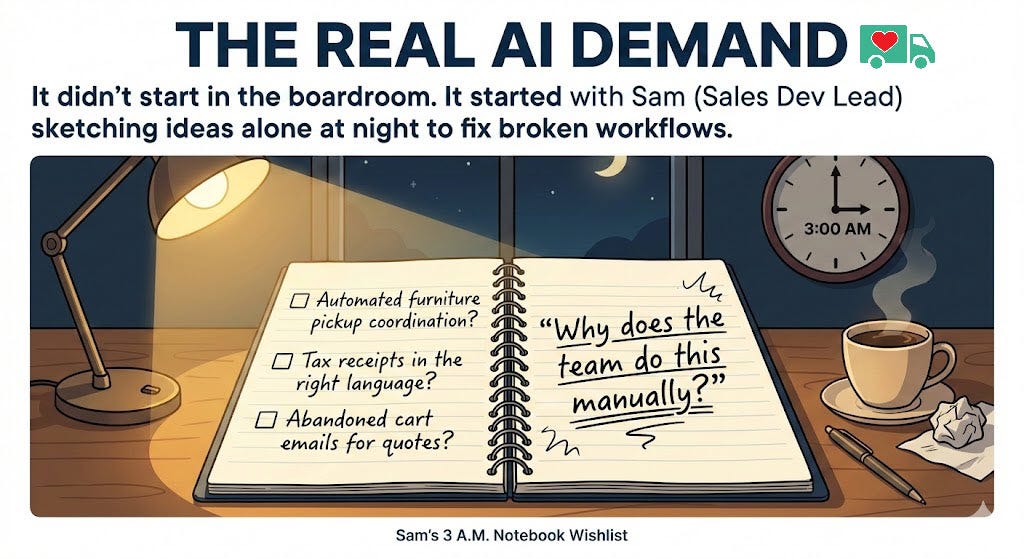 A clearer definition of the real problems for Furniture Bank (not just “AI agents”).